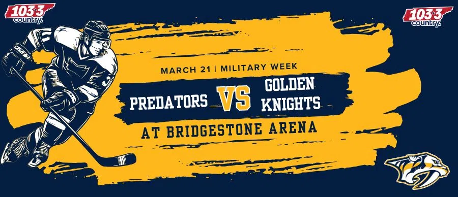 Smashville, this is a night of honor and pride. The Nashville Predators take on the Vegas Golden Knights on March 21st as part of Military Week, and 103.3 Country wants to send you to Bridgestone Arena to be part of it.