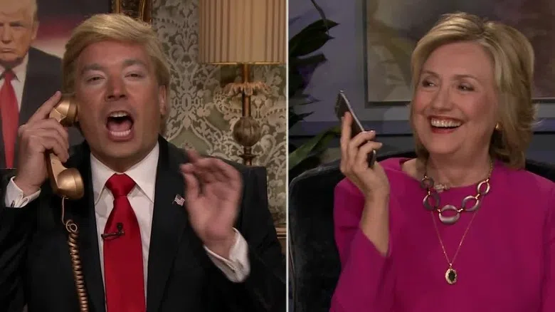 Democrat presidential candidate Hillary Clinton get a call from Jimmy Fallon acting as Donald Trump on “The Tonight Show Starring Jimmy Fallon.”