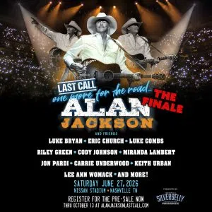 After decades of hits, memories and unforgettable moments - Alan Jackson is saying farewell to LIVE performances with his Last Call: One More For The Road FINALE at Nissan Stadium on Saturday, June 27th with performances by some of your favorite country stars including: Luke Bryan, Eric Church, Luke Combs, Riley Green,…
